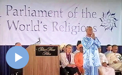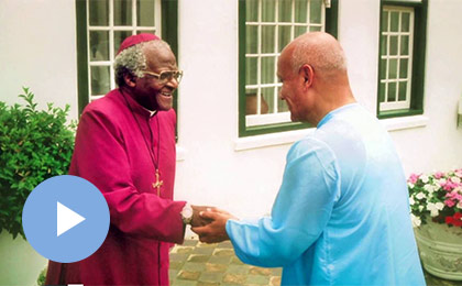Нобеловиот лауреат Архиепископот Дезмонд Туту чита од „Мир“, поглавје од книгата „Драгоценостите на среќата“ („The Jewels of Happiness“) од Шри Чинмој.